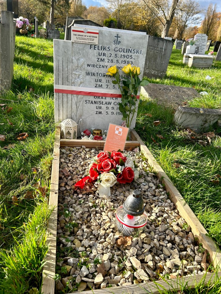 W ubiegłym roku decyzją Prezesa IPN-u dr. Karola Nawrockiego otrzymaliśmy wpis mogiły Inż. Feliksa Golińskiego, żołnierza Polskich Sił Powietrznych na Zachodzie oraz RAF,  który zmarł 28.05.1983 i spoczął na cmentarzu Morden w Londynie,  do ewidencji grobów weteranów walk o wolność i niepodległość Polski pod numerem ewidencyjnym – 7226.