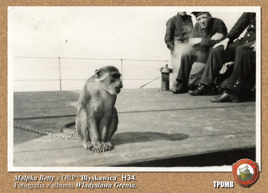 The monkey was found in Gibraltar when the ORP Błyskawica docked in the local port. The animal, still very young, fearlessly followed the sailors on board and quickly gained their sympathy. The crew adopted the monkey as their mascot and named it Betty. Although it was later discovered that it was a male, the name stuck to the new crew member.