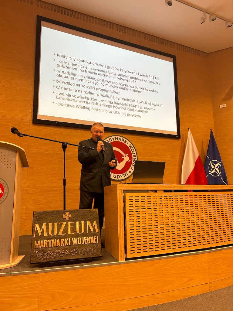 Jednym z prelegentów na sesji był Dyrektor Muzeum Marynarki Wojennej w Gdyni, Tomasz Miegoń, który opowiedział o ofiarach katyńskich wśród Polskiej Marynarki Wojennej,