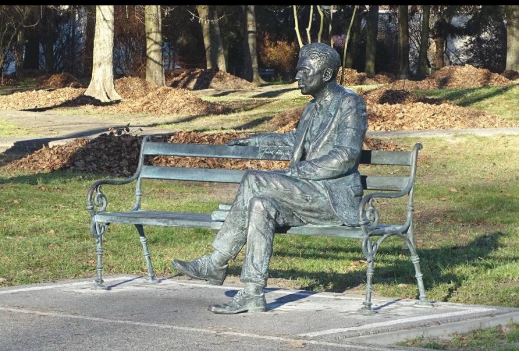 Jerzy Różycki memorial bench in Wyszków, near Warsaw