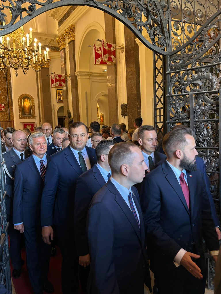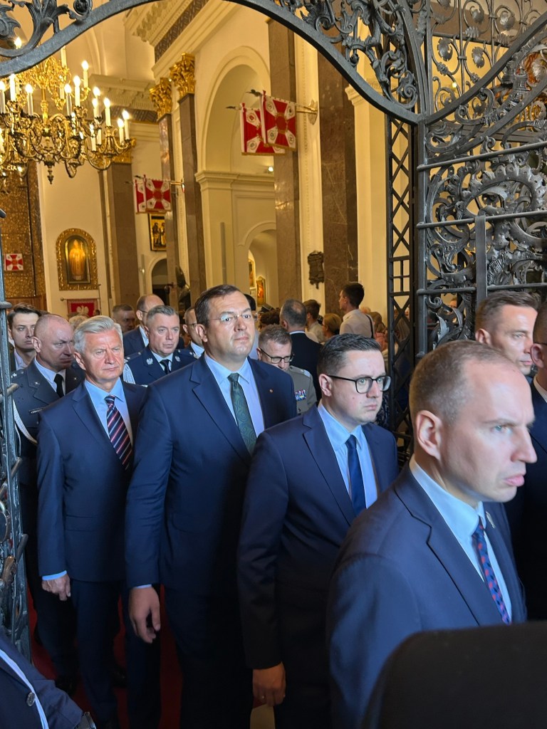 The service was attended by the highest-ranking state officials, including the President of the Republic of Poland, Karol Nawrocki, and his wife, Marta Nawrocka, as well as representatives of the armed forces, veterans, and guests from Poland and abroad.