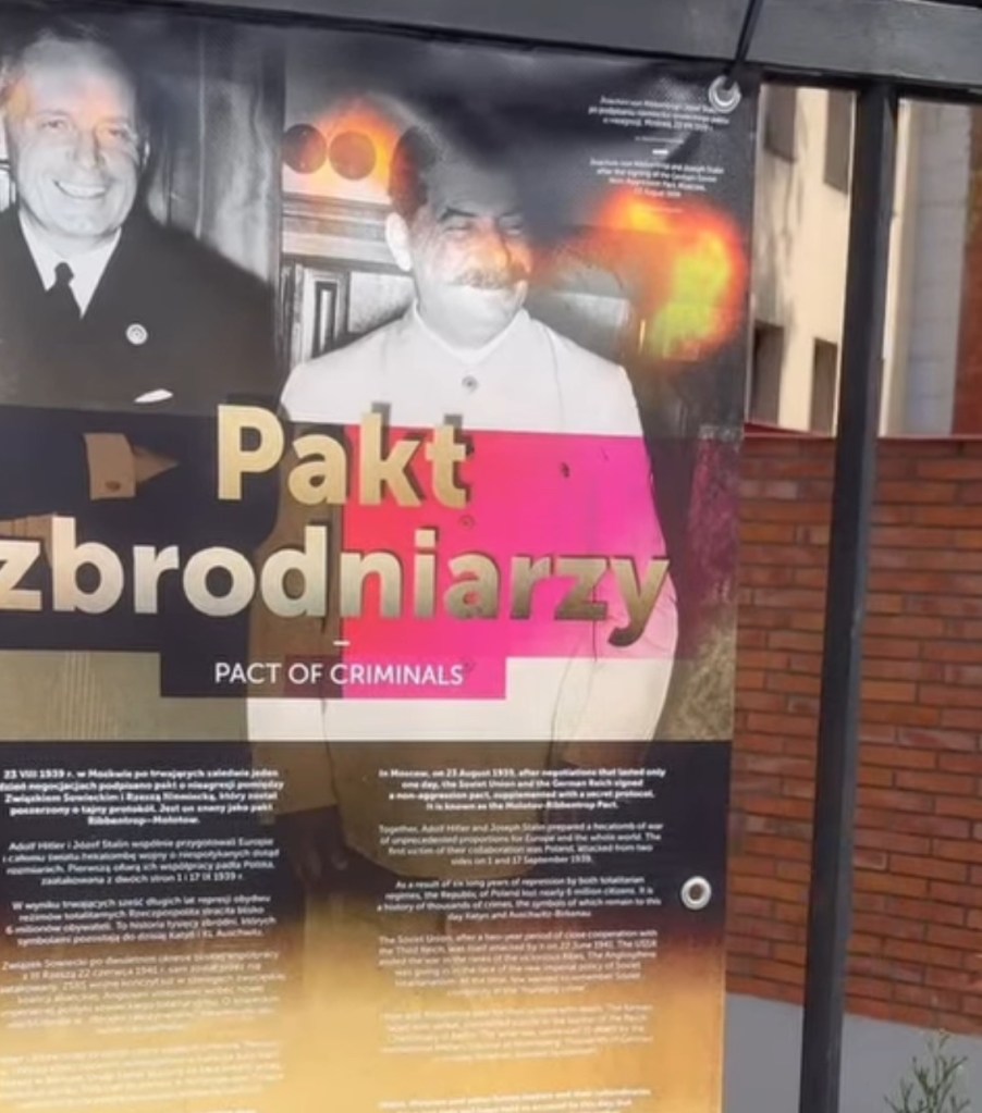 Institute of National Remembrance’s exhibition in front of the IPN Archive in Lublin, titled “The Pact of Criminals.”