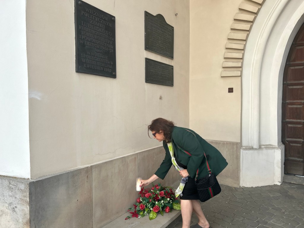 Today, on the anniversary of the signing of the Molotov-Ribbentrop Pact, the Polish Sue Association, represented by its president, Iwona Golińska, laid flowers at Lublin Castle to commemorate the victims of two totalitarian systems – German and Soviet.