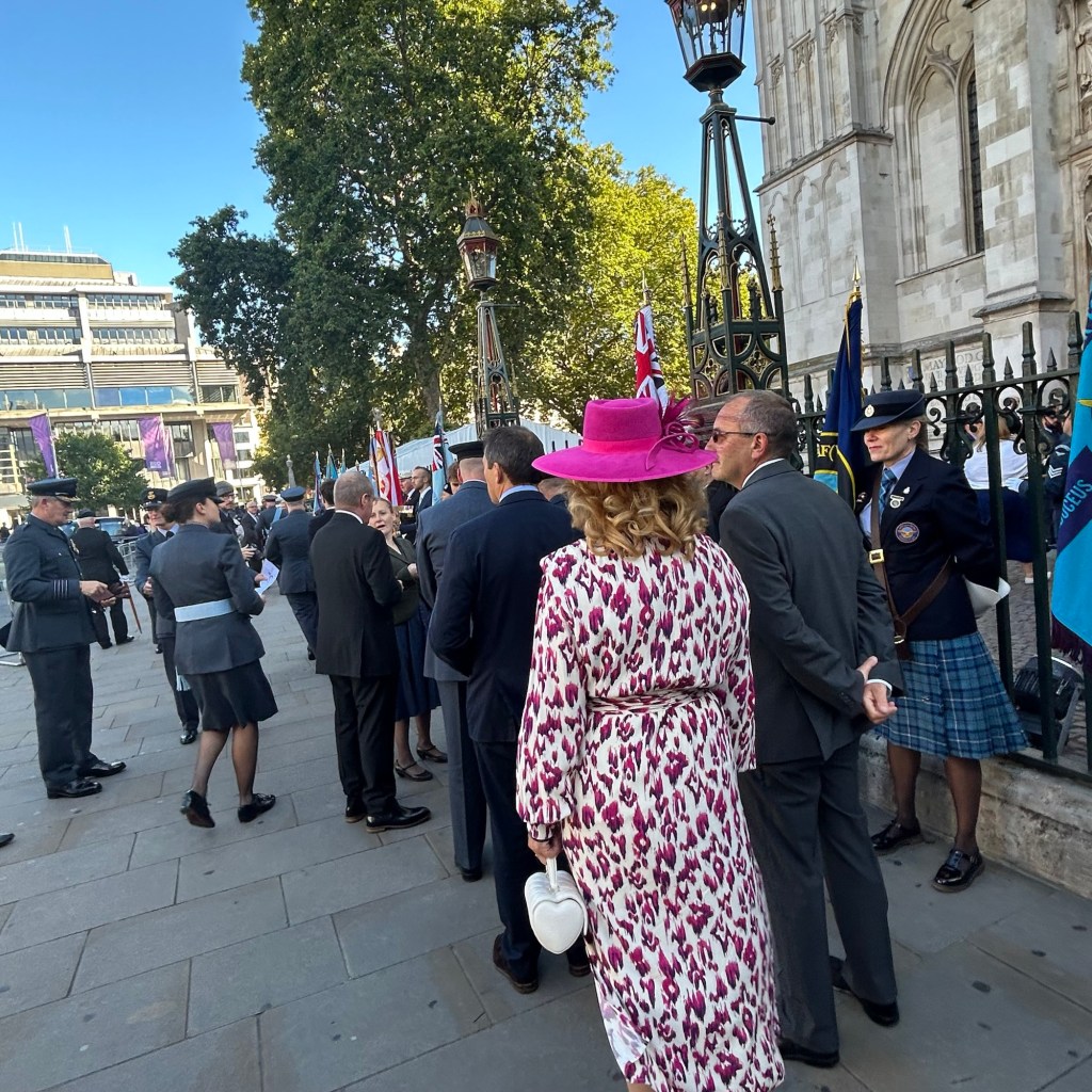 Gdy nabożeństwo dobiegło końca, nad Opactwem rozległ się głęboki ryk: bombowiec Lancaster z Battle of Britain Memorial Flight przeleciał nad londyńskim niebem, będąc żywym symbolem pamięci o załogach lotniczych z 1940 roku.