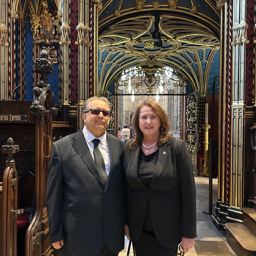 The congregation included political and military leaders. Among those formally received were: Sir Kenneth Olisa OBE, Lord-Lieutenant of Greater London, Air Chief Marshal Harv Smyth CB OBE DFC ADC, Chief of the Air Staff, The Rt Hon Kemi Badenoch MP, Leader of His Majesty’s Most Loyal Opposition, The Rt Hon Sir Keir Starmer KCB KC MP, Prime Minister of the United Kingdom, accompanied by Lady Starmer, Councillor Paul Dimoldenberg, The Lord Mayor of Westminster, Marshal of the Royal Air Force The Lord Stirrup KG GCB AFC, representing His Majesty The King.
