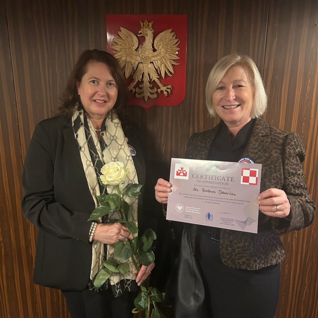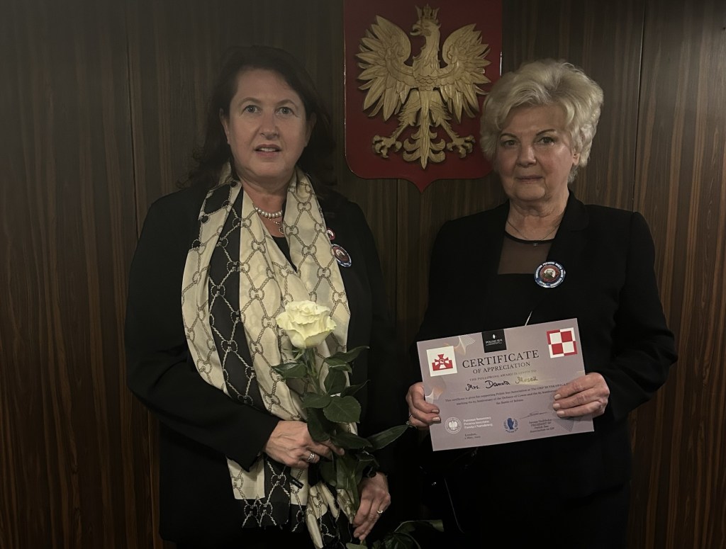 For this work, Iwona Golińska was honored with a Certificate of Recognition by the Society’s president, Małgorzata Łubkowska.