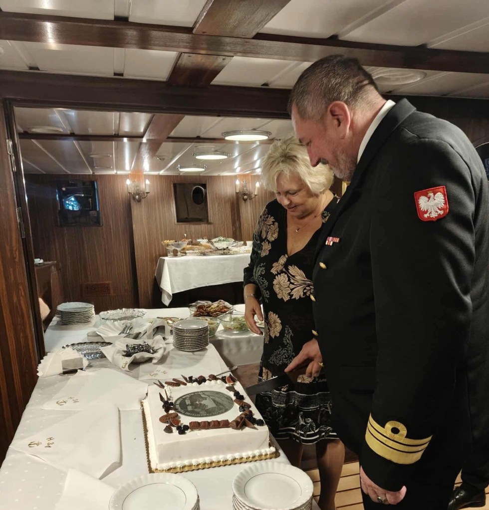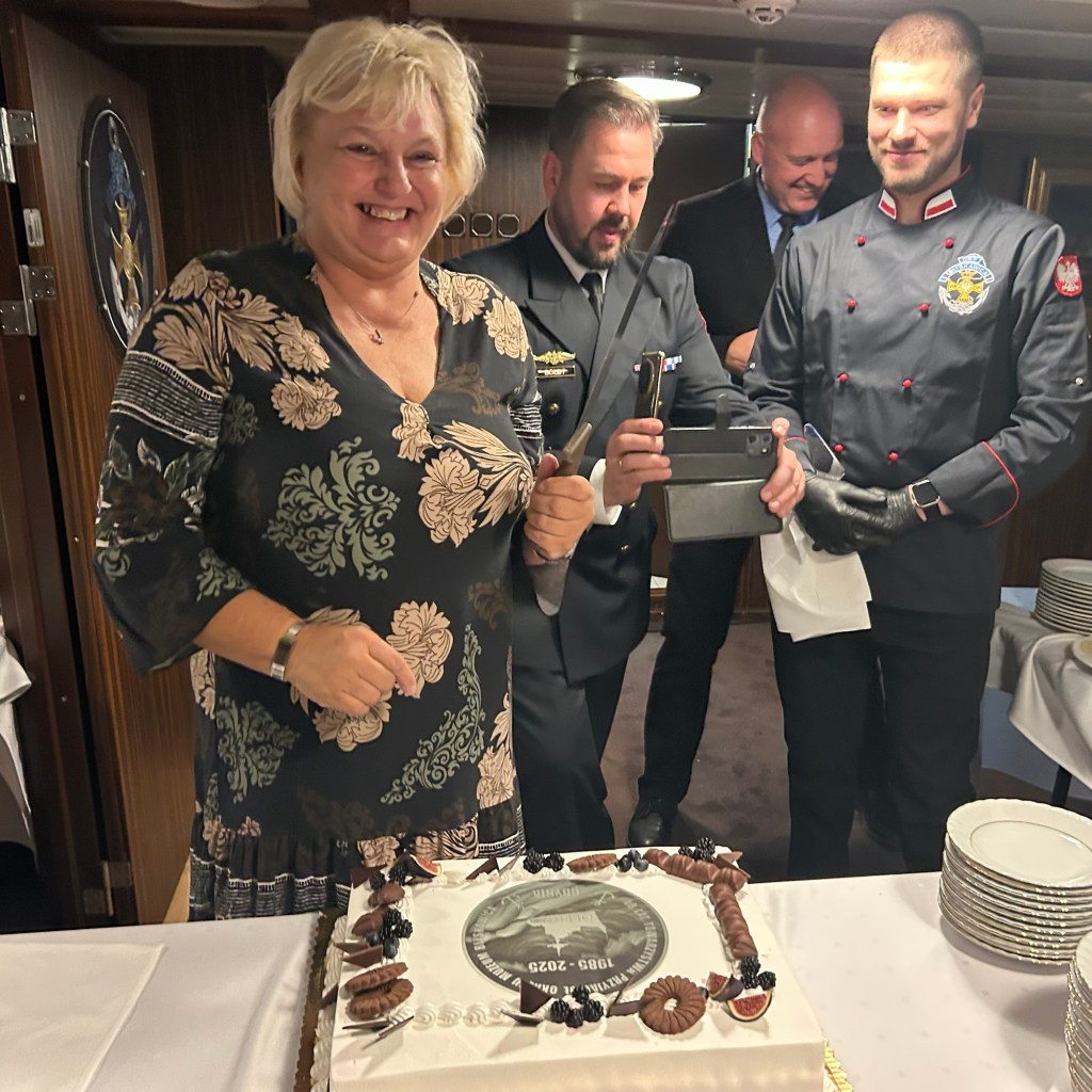 A gala reception to celebrate the anniversary was held in the historic Privateers’ Salon, featuring salmon, roast wild boar, and a sumptuous birthday cake, which was cut together by Małgorzata Łubkowska and Lt. Cdr. Paweł Ogórek. We sang “100 Years of ORP Błyskawica in the Service of the Most Serene Republic.”