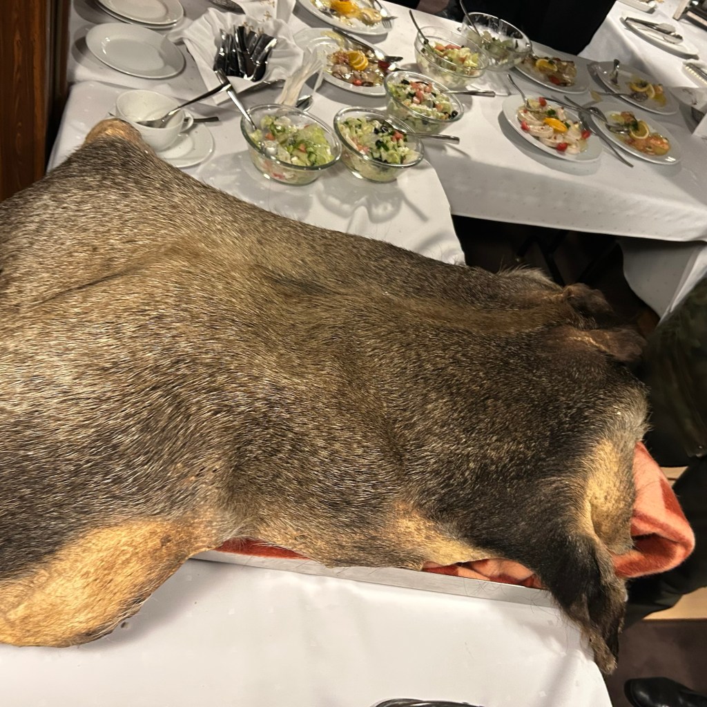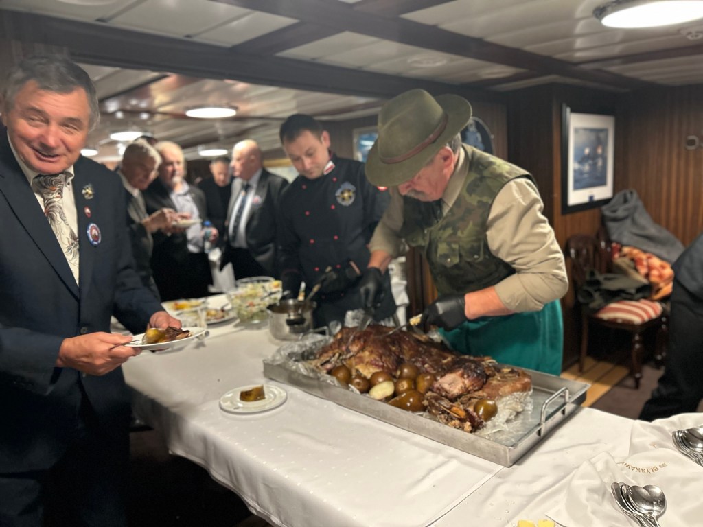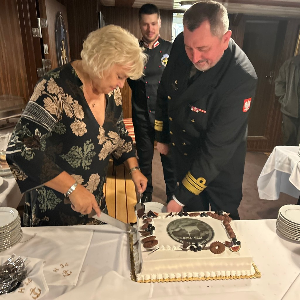W historycznym Salonie Kaprów odbyło się uroczyste przyjęcie z okazji jubileuszu – z łososiem, pieczenią z dzika i okazałym tortem urodzinowym, który wspólnie pokroili Małgorzata Łubkowska i kmdr por. Paweł Ogórek, przy którym wspólnie odśpiewaliśmy 100 lat dla ORP Błyskawica w służbie Najjaśniejszej Rzeczypospolitej.
