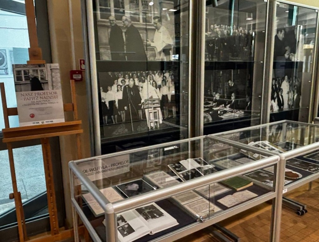 Wystawa w Bibliotece Uniwersyteckiej KUL prezentuje zbiór materiałów dokumentujących życie, nauczanie i działalność akademicką Karola Wojtyły – św. Jana Pawła II. Wśród eksponatów znalazły się publikacje poświęcone jego myśli, pamiątki przekazane przez pracowników, materiały przypominające okres pracy naukowej na Uniwersytecie oraz imitacja ulubionego ciasta Ojca Świętego – papieskiego piernika.