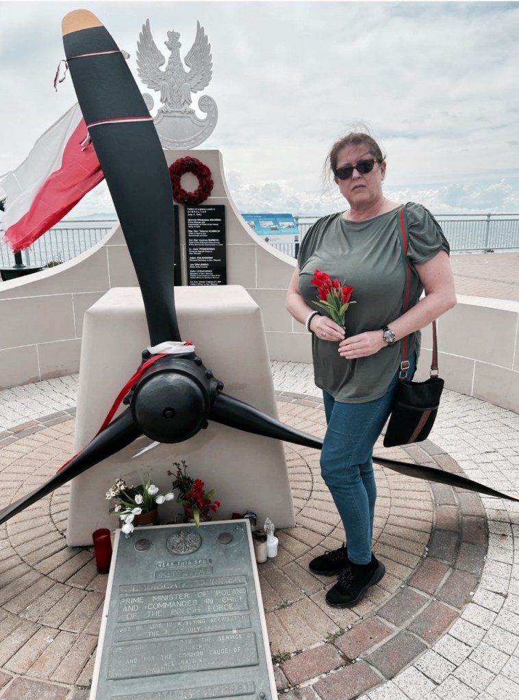 Prezes Polish Sue Iwona Golińska złożyła kwiaty pod pomnikiem Władysława Sikorskiego na Gibraltarze (2024).