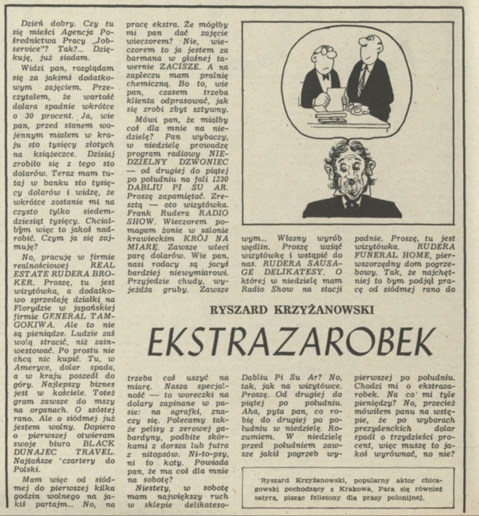 Represje doprowadziły go do emigracji. Osiadł w Chicago – mieście, które od początku XX wieku było jednym z największych ośrodków polskiego życia na emigracji. Tutaj teatr odgrywał rolę szczególną – był nie tylko sztuką, lecz także ostoją tożsamości i pamięci narodowej.