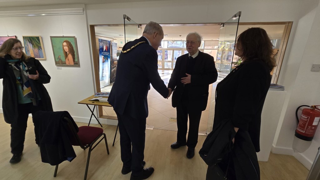 The Lord Mayor viewed an exhibition of Polish painters presented by Joanna Ciechanowska, an outstanding Polish artist. Joanna presented him with her album “EMIGRATION – WILL I MAKE IT? The Art of Joanna Ciechanowska.”