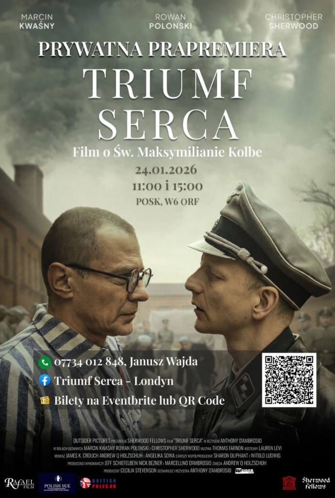 Niezwykła historia św. Maksymiliana Kolbego zostanie przeniesiona na ekran w Londynie wraz z prapremierą filmu fabularnego „Triumf Serca”, poruszającego, filmowego portretu jego ostatnich dni i moralnego heroizmu.
