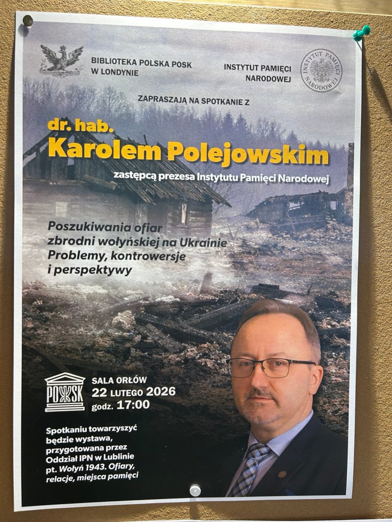 Biblioteka Polska POSK w Londynie zaprasza na wyjątkowe wydarzenie z udziałem dr. hab. Karola Polejowskiego – zastępcy prezesa Instytutu Pamięci Narodowej.