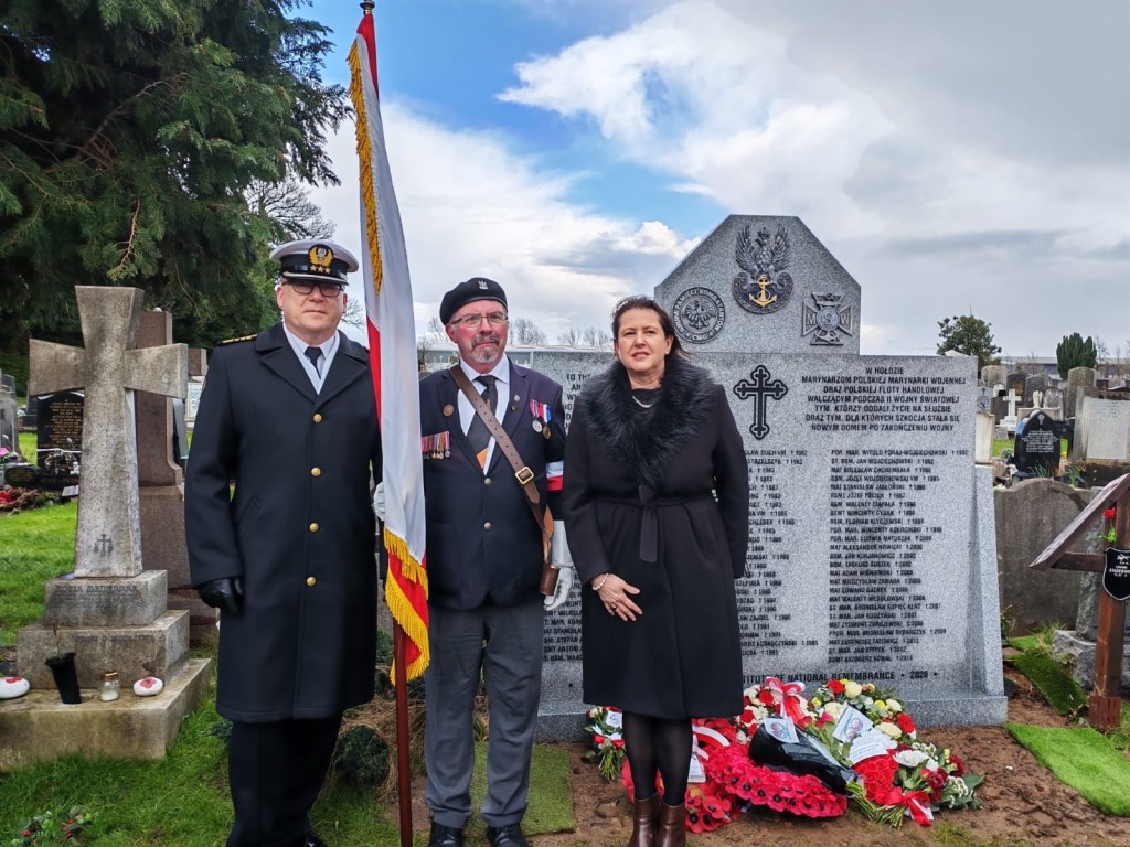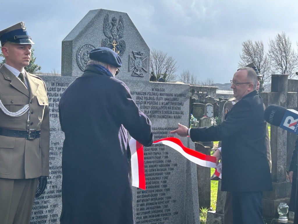 The commemorations began on 13 March at 12:00 pm at Dalbeth Cemetery in Glasgow, where a restored monument dedicated to sailors of the Polish Navy and the Polish Merchant Fleet who fought for Poland’s freedom during the Second World War was unveiled.
