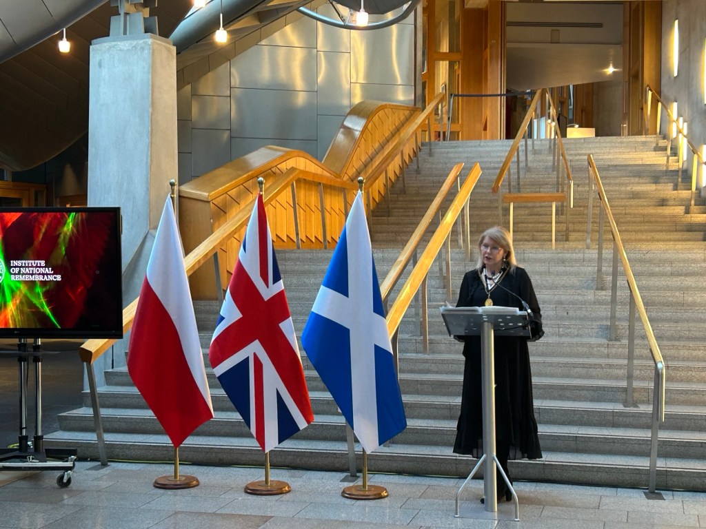 Later that day, at 5:30 pm at the Scottish Parliament in Edinburgh, the Institute of National Remembrance exhibition “Trails of Hope. The Odyssey of Freedom” was officially opened.