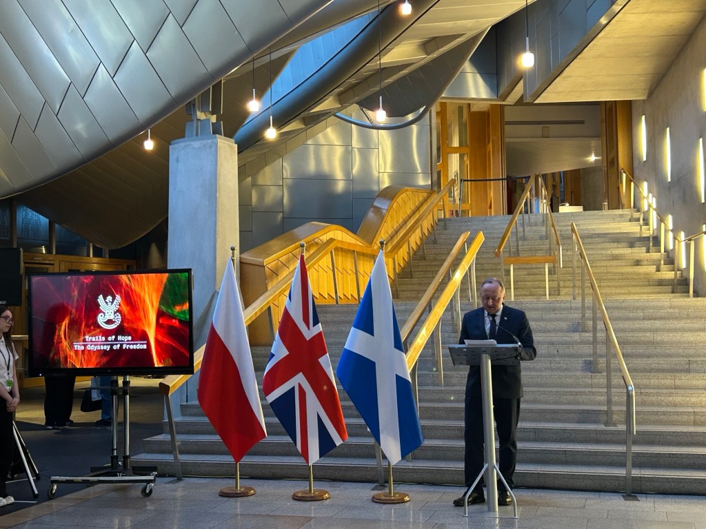 Tego samego dnia o godzinie 17:30 w Parlamencie Szkockim w Edynburgu odbyło się uroczyste otwarcie wystawy Instytutu Pamięci Narodowej „Szlaki Nadziei. Odyseja Wolności”.