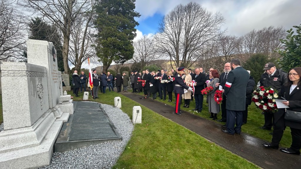 Delegacja złożyła również wieńce przy Polskim Pomniku na Solidarity Plaza w Clydebank.