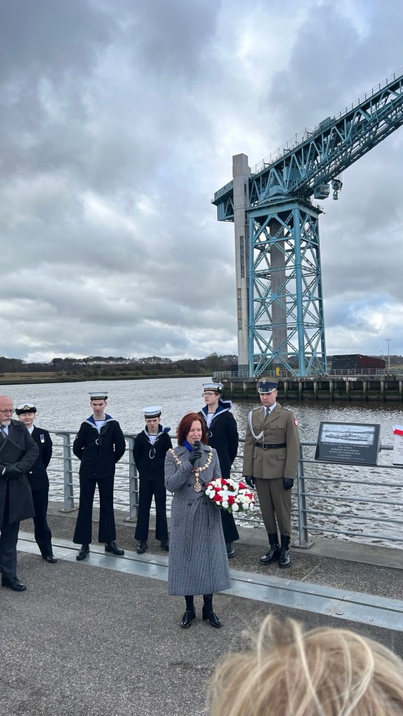 Następnie odsłonięto nową tablicę upamiętniającą załogę polskiego niszczyciela ORP „Piorun”, która została zainstalowana przez IPN we współpracy lokalnych władz oraz Polish Sue, aby przypomnieć o bohaterstwie polskich marynarzy podczas nalotu na Clydebank.