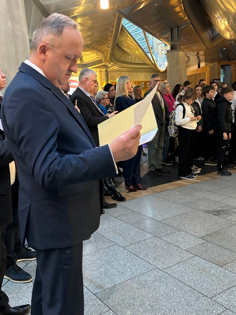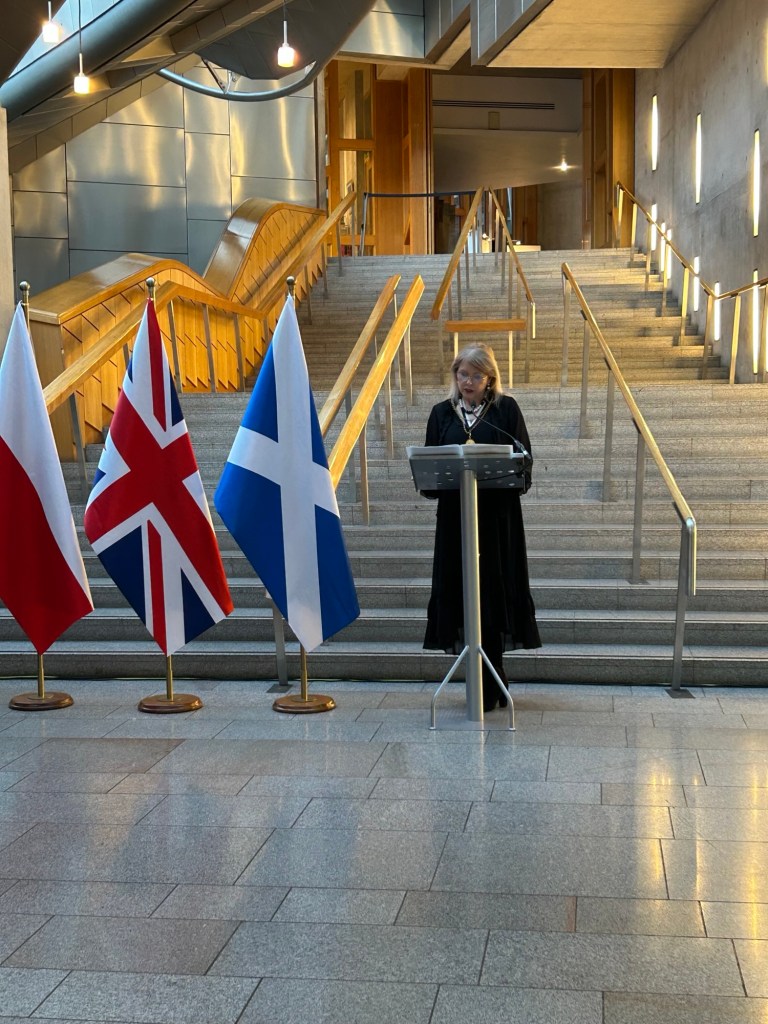 Uroczystość otworzyła posłanka do parlamentu szkockiego – Annie Wells MSP, witając zgromadzonych gości w Parlamencie Szkockim.