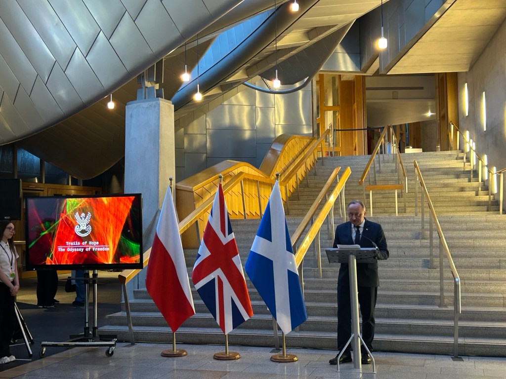 EDYNBURG, 13 marca 2026 r. — W Parlamencie Szkockim odbyło się uroczyste otwarcie wystawy „Szlaki Nadziei. Odyseja Wolności”, przygotowanej przez Instytut Pamięci Narodowej (IPN) przy współpracy z Polish Sue Association.