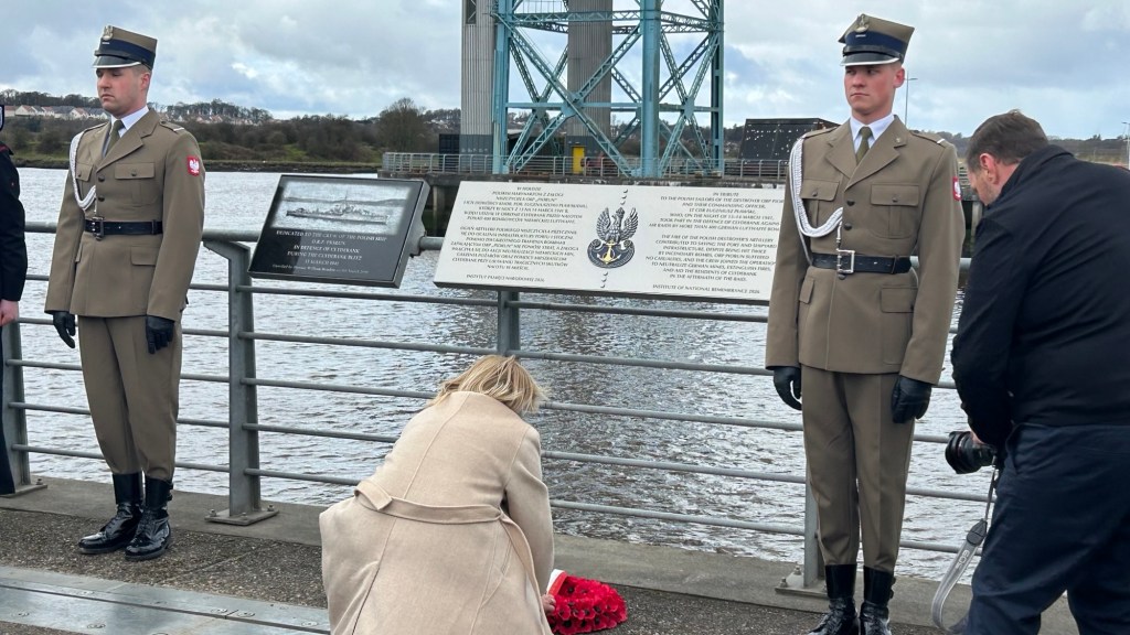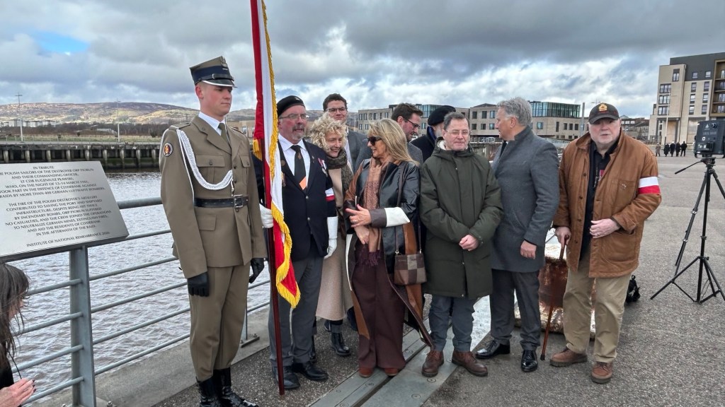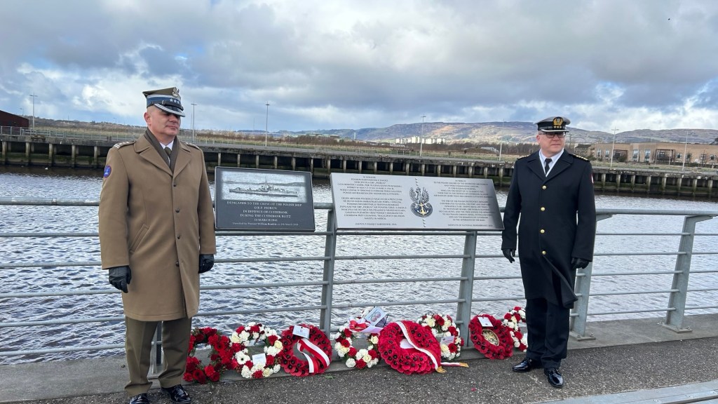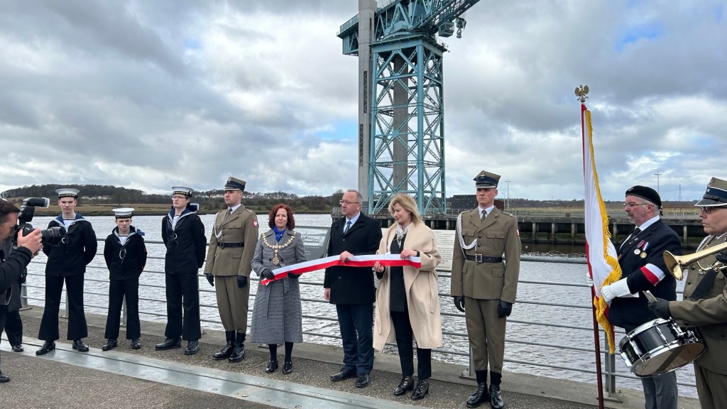 Installed along the River Clyde, near the site where the ship was moored during the raid, the plaque commemorates the role of Polish sailors in defending the town.