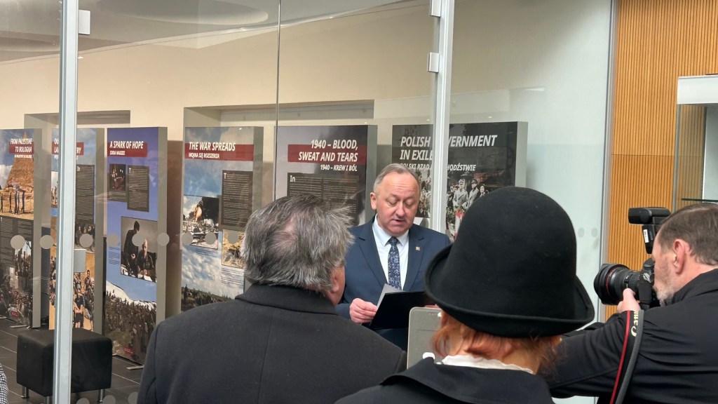The exhibition highlights the broader story of Polish wartime displacement, military contribution, and enduring ties with the United Kingdom.