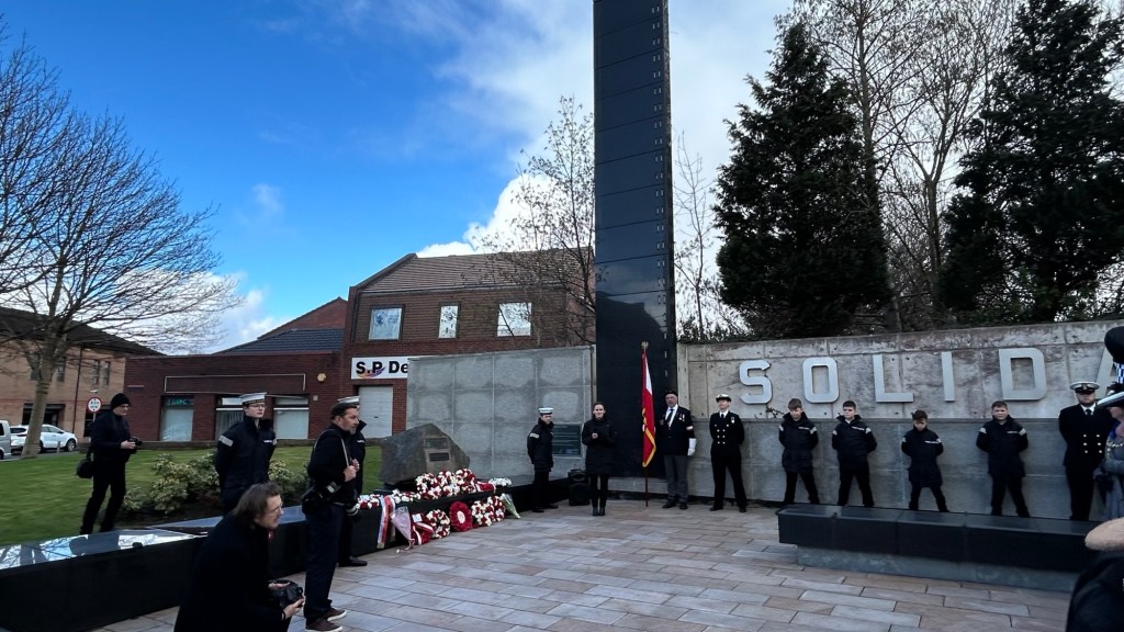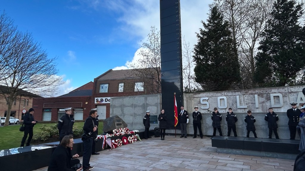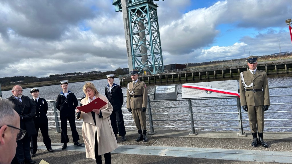 Clydebank, 14 marca 2026 r. – podczas uroczystości odsłonięcia tablicy upamiętniającej bohaterską obronę Clydebank przez ORP „Piorun”, w 85. rocznicę tragicznych wydarzeń z marca 1941 roku, wybrzmiał szczególny głos – głos współczesnej Marynarki Wojennej Rzeczypospolitej Polskiej.