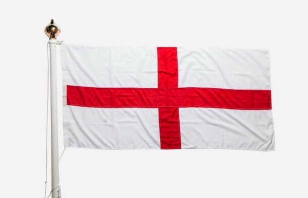 Czerwony krzyż na białym tle – flaga Anglii Czerwona róża – symbol narodowy Rycerz pokonujący smoka – znak odwagi i zwycięstwa